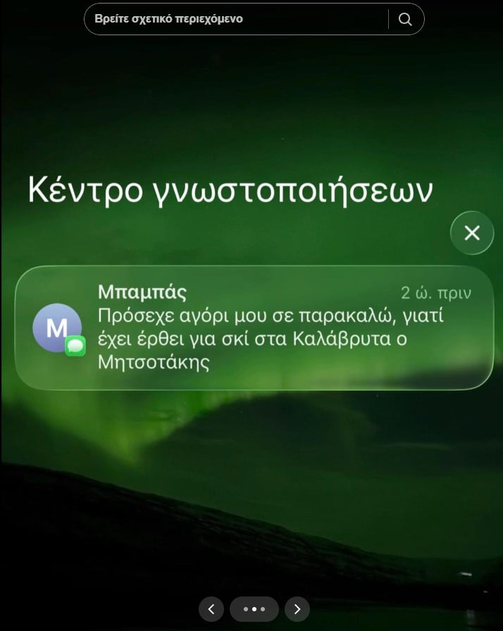 «Πρόσεχε αγόρι μου σε παρακαλώ, γιατί έχει έρθει για σκι στα Καλάβρυτα ο Μητσοτάκης», έγραψε ο πατέρας του σε μήνυμα που ο Johnny Koro δημοσίευσε σε story.