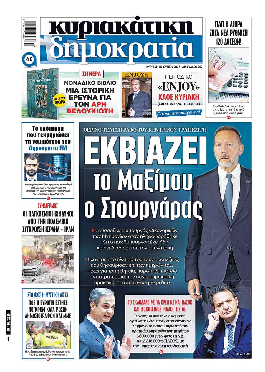 Ο στόχος του Γιάννη Στουρνάρα δεν εκπληρώνει μόνο τη ματαιοδοξία του, αλλά -παραμένοντας μέχρι το 2032- η παρουσία του διασφαλίζει τα υπερκέρδη των τραπεζών, την αδιάκοπη ροή χρήματος προς την οικονομική ελίτ και την επέλαση ξένων συμφερόντων, ώστε το ξεπούλημα της δημόσιας και της ιδιωτικής περιουσίας που άρχισε από το 2010 να ολοκληρωθεί πλήρως. Από τα μέσα Ιουνίου η «δημοκρατία» είχε αποκαλύψει τo θερινό τελεσίγραφο του κεντρικού τραπεζίτη στον Κυριάκο Μητσοτάκη μέχρι τη ΔΕΘ. Το πρωτοσέλιδο ρεπορτάζ στις 15 Ιουνίου, με τίτλο «Εκβιάζει το Μαξίμου ο Στουρνάρας» και πιέζει για τρίτη θητεία, αφότου πληροφορήθηκε τα περί διαδοχής του από τον Θεόδωρο Σκυλακάκη, έφτασε μέχρι και τη Βουλή λίγες ημέρες αργότερα.