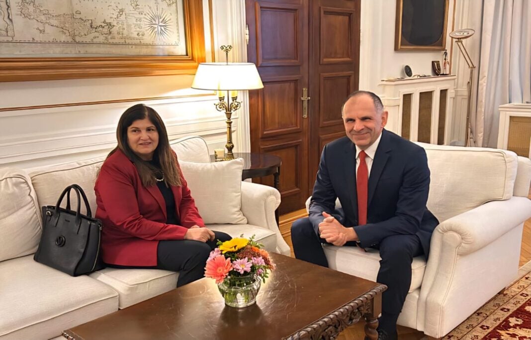 FM George Gerapetritis’ mtg with the Palestinian Minister of Foreign Affairs and Expatriates, Varsen Aghabekian Shahin📍Αθήνα
