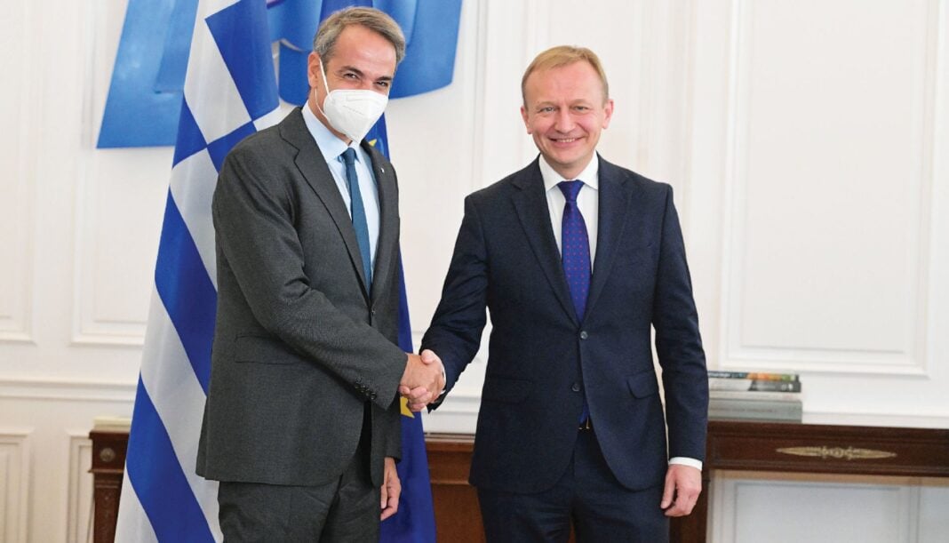 Για τριπλασιασμό των πόρων στο νέο, πολυετές δημοσιονομικό πλαίσιο της Ε.Ε. για την προστασία των εξωτερικών συνόρων και τη διαχείριση της μετανάστευσης, με ανάλογο αποτέλεσμα και στην κατανομή των κονδυλίων για την Ελλάδα στον συγκεκριμένο τομέα, έκανε λόγο χθες ο Ευρωπαίος επίτροπος για τον Προϋπολογισμό, την Καταπολέμηση της Απάτης και τη Δημόσια Διοίκηση Piotr Serafin, κατά τη διάρκεια της συνάντησης που είχε με τον πρωθυπουργό Kυριάκο Μητσοτάκης, χθες, στο Μέγαρο Μαξίμου.