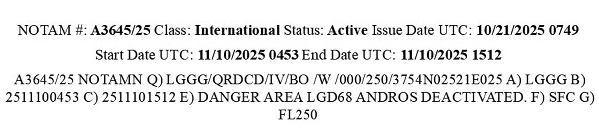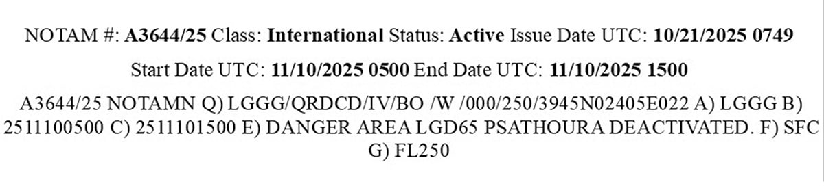 Συγκεκριμένα, η Ελλάδα ενημέρωσε τη διεθνή κοινότητα ότι κλείνει εκ νέου, για τέταρτη φορά, στις 10 Νοεμβρίου 2025, τα τρία ελληνικά βασικά και μόνιμα πεδία βολής στο Αιγαίο (Ψαθούρας, Ανδρου, Κρήτης), στα οποία οι Ενοπλες Δυνάμεις (Στρατός, Ναυτικό, Αεροπορία) ασκούνται σε συνθήκες μάχης καθ’ όλη τη διάρκεια του έτους. Δι’ αυτού του τρόπου, τίθεται πλέον θέμα μονιμότητας των τριών πεδίων βολής στο Αιγαίο, εξυπηρετώντας το πάγιο αίτημα δεκαετιών της Τουρκίας να κλείσουν τα ελληνικά πεδία βολής, το οποίο καμιά ελληνική κυβέρνηση μέχρι τώρα δεν υλοποίησε.