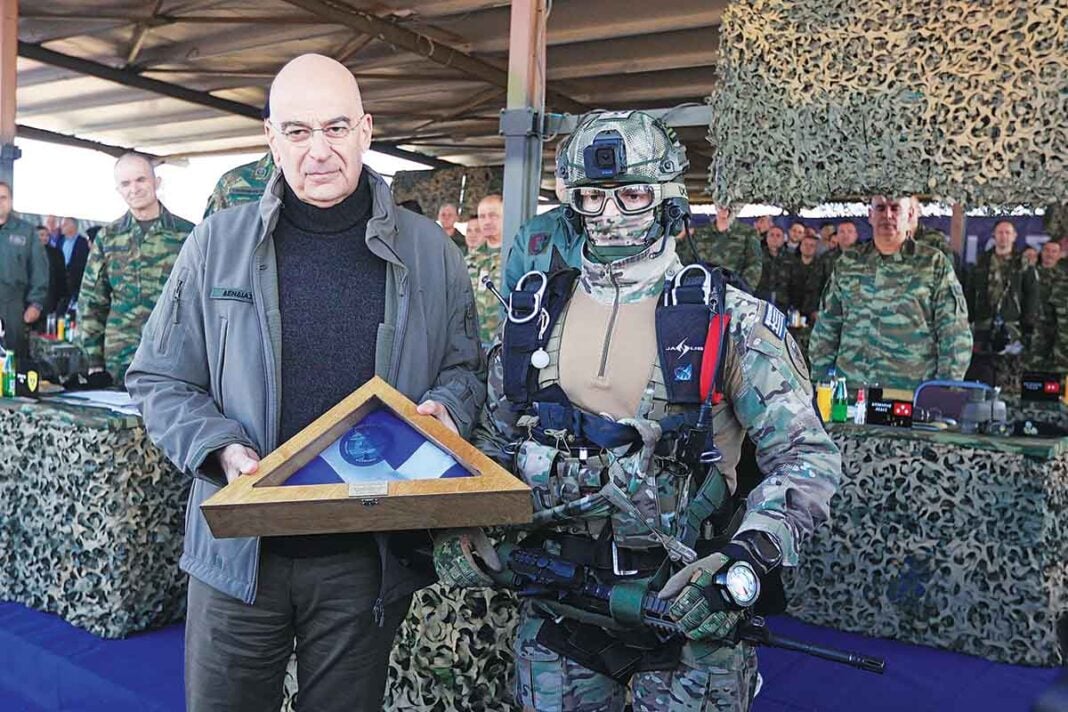 Ο υπουργός Εθνικής Αμυνας, Νίκος Δένδιας, βρέθηκε στον Εβρο για να παρακολουθήσει την τελική φάση δύο σημαντικών τακτικών ασκήσεων μετά στρατευμάτων: Την «Τακτική Χρησιμοποίηση ΣμηΕΑ – ΑΝΤΙΣμηΕΑ» και την άσκηση «Αίσιος Οιωνός 2025». Με την παρουσία του στο πεδίο βολής και ασκήσεων «Αετός» ο κ. Δένδιας θέλησε να αναδείξει το βάρος που δίνει το υπουργείο στον εκσυγχρονισμό των επιχειρησιακών δυνατοτήτων του Στρατού Ξηράς και στη συστηματική ενσωμάτωση νέων τεχνολογιών στο πεδίο των επιχειρήσεων.