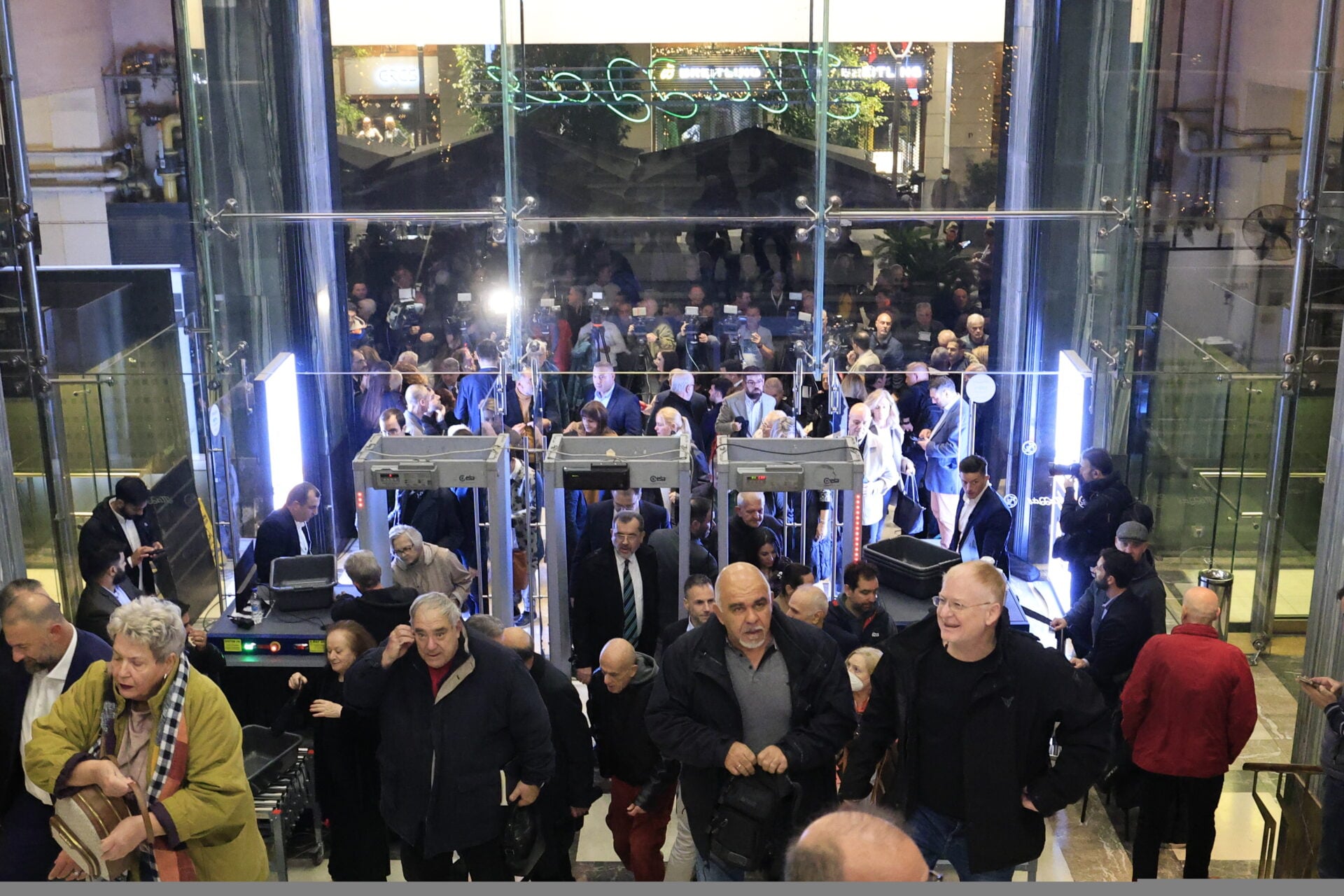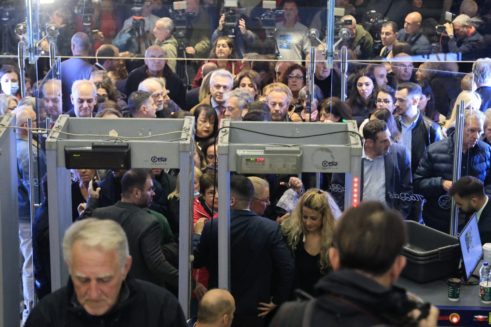 Οι οργανωτές στέλνουν τον κόσμο έξω. Σαρακιώτης, Θεοχαρόπουλος, Μπίστης, Μαριλίζα και Καλαματιανός, γενικά οι βουλευτές κάθονται πάνω στα θεωρία όπου επίσης υπάρχουν κορδέλες και είναι θέσεις reservé.