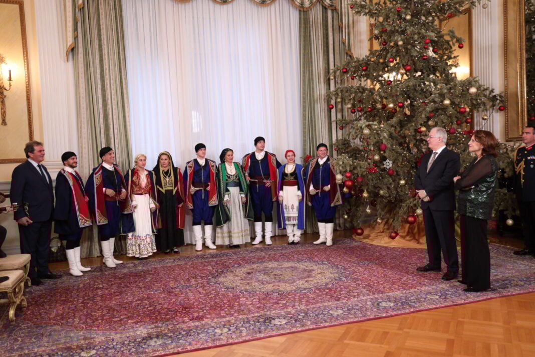Η Μπάντα των Ενόπλων Δυνάμεων και η Προεδρική Φρουρά έψαλαν τα κάλαντα της Πρωτοχρονιάς στον Πρόεδρο της Δημοκρατίας Κωνσταντίνο Αν. Τασούλα και τη σύζυγό του Φανή Σταθοπούλου.