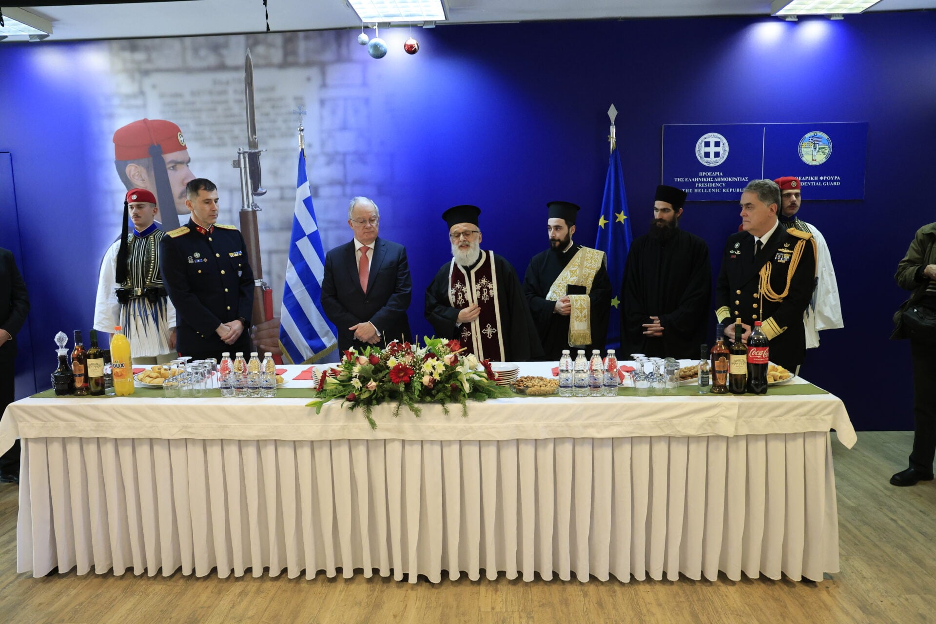 Ο Πρόεδρος της Δημοκρατίας, Κώστας Τασούλας, μετά την πρωινή δοξολογία στον Καθεδρικό Ναό Αθηνών, μετέβη στην Προεδρική Φρουρά για την κοπή της πρωτοχρονιάτικης πίτας.