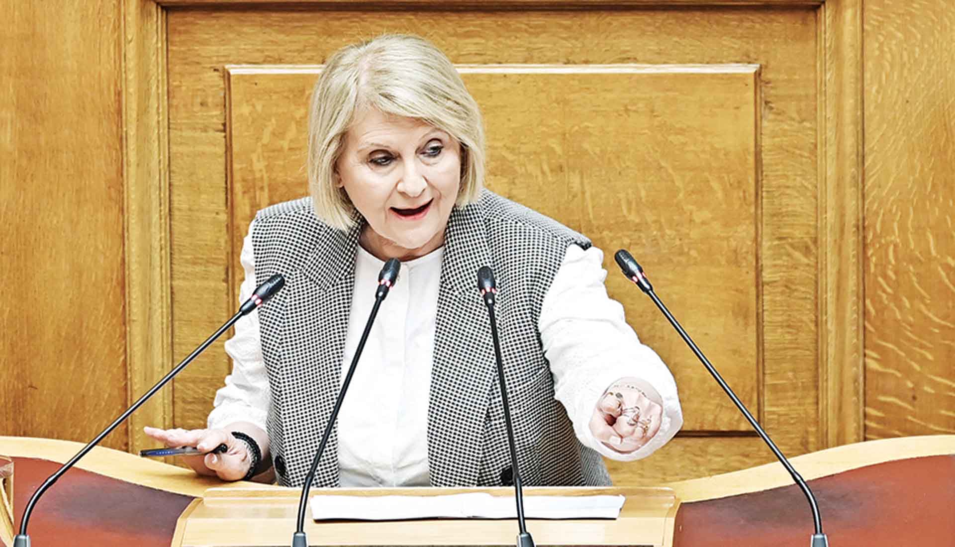 Ακραίο παραλήρημα της Βούλτεψη κατά της μάνας των Τεμπών. Επίθεση από Μαρινάκη, προσβλητικό κρεσέντο από τον Αδωνι