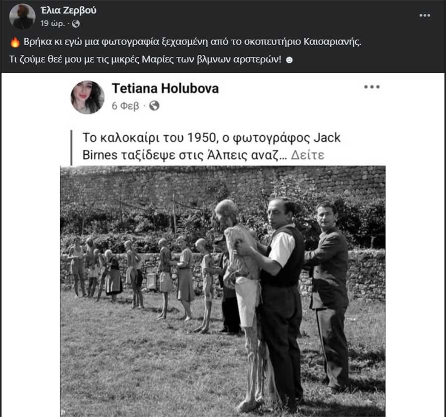• «Βρήκα κι εγώ μια φωτογραφία ξεχασμένη από το σκοπευτήριο Καισαριανής. Τι ζούμε, Θεέ μου, με τις μικρές Μαρίες των βλαμμένων αριστερών».