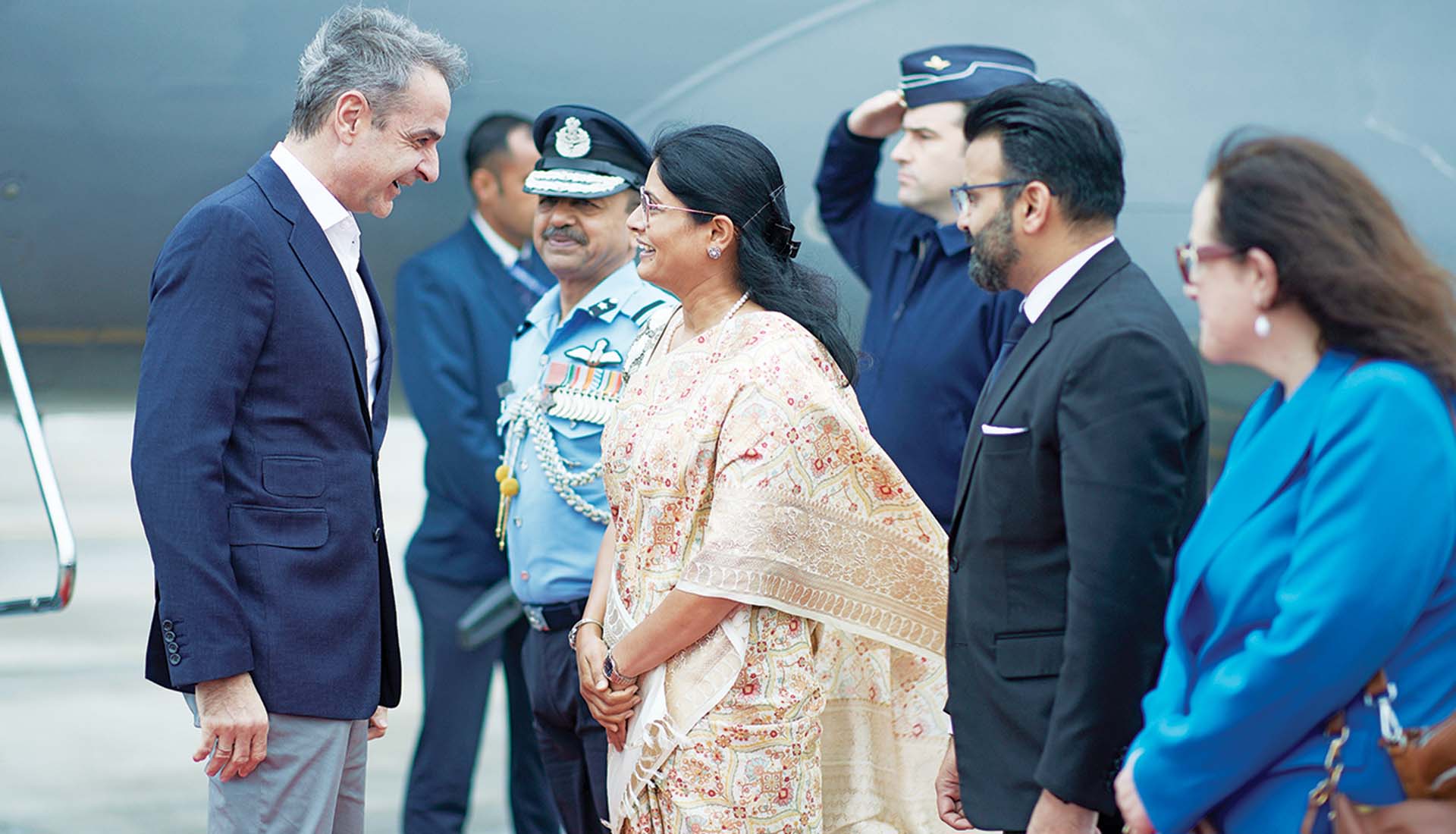 Θερμή υποδοχή από τον Ινδό πρωθυπουργό Ναρέντρα Μόντι επιφυλάχθηκε στον Κυριάκο Μητσοτάκη κατά τη χθεσινή άφιξή του στο Νέο Δελχί, όπου πραγματοποιεί διήμερη επίσημη επίσκεψη, με επίκεντρο τη σημερινή συμμετοχή του στο διεθνές συνέδριο για την Τεχνητή Νοημοσύνη και τις επαφές με την ινδική πολιτική και οικονομική ηγεσία.