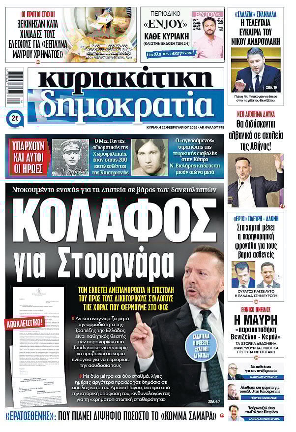 Το πρωτοσέλιδο της «κυριακάτικης δημοκρατίας» στις 22 Φεβρουαρίου