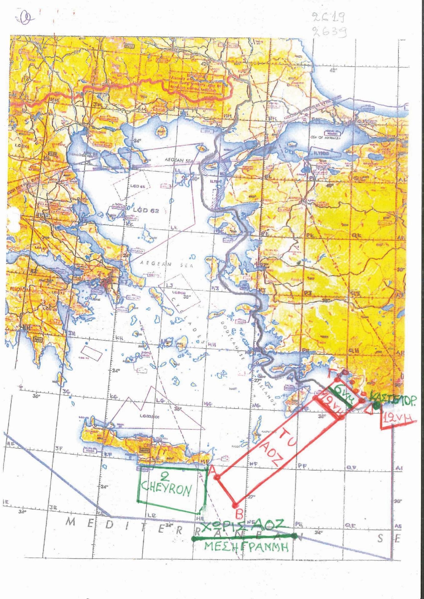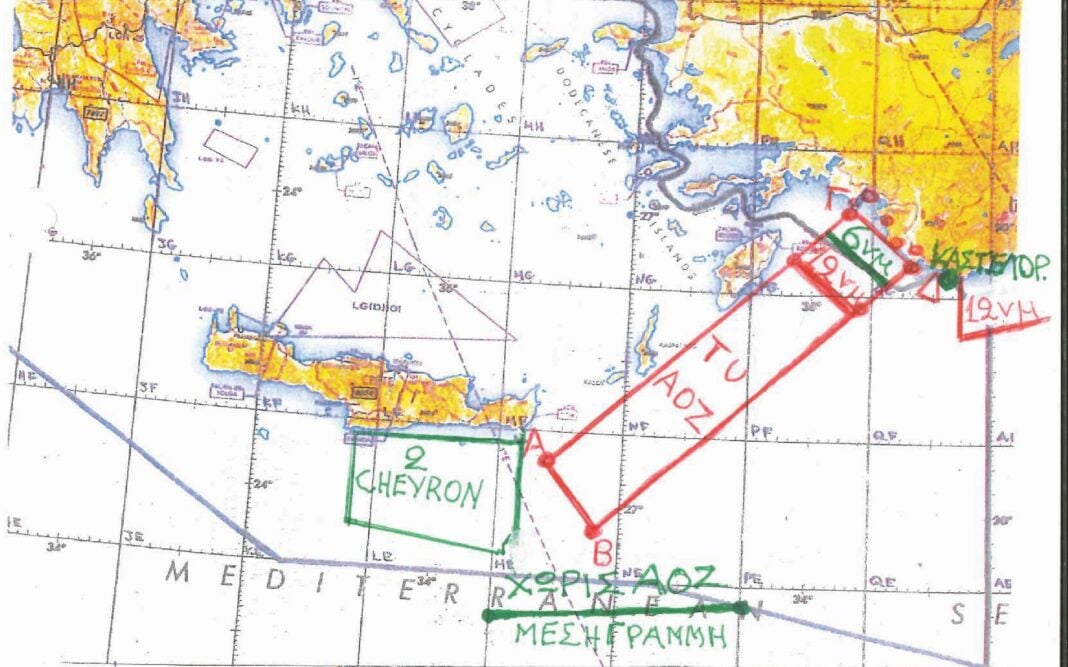 Το τμήμα της τουρκικής περιοχής ΑΟΖ από την οριοθέτηση της τουρκολιβυκής ΑΟΖ δεν καταργείται και παραμένει ακέραιο και από τις περιοχές έρευνας της Chevron και από την οριοθέτηση της μέσης γραμμής ΑΟΖ Ελλάδας – Αιγύπτου. Και τούτο διότι η επέκταση της περιοχής Νο 2 ερευνών της Chevron έστω κατά 10 ν.μ. ανατολικά θα επικάλυπτε και την ελληνική περιοχή ΑΟΖ με την Αίγυπτο. Οπως φαίνεται στον χάρτη, με πράσινο χρώμα η περιοχή Νο 2 της Chevron δεν αγγίζει, δεν επικαλύπτει και δεν επηρεάζει την περιοχή της τουρκικής ΑΟΖ.