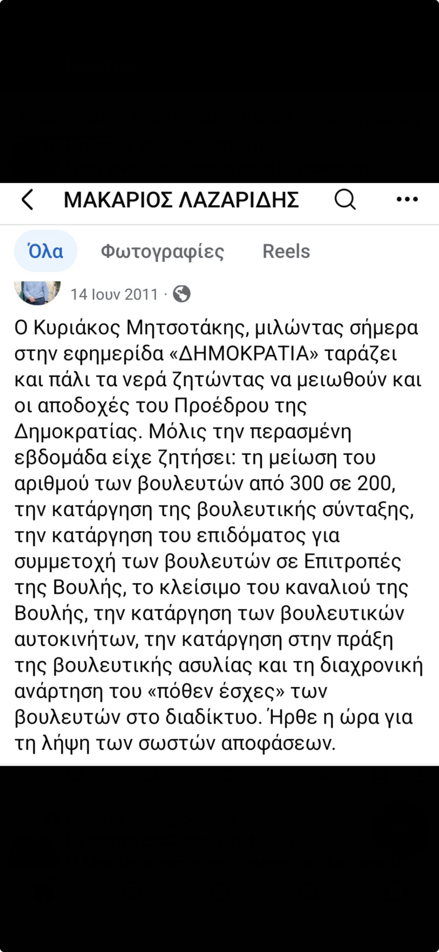 Μια βδομάδα πριν έχει ζητήσει τη μείωση του αριθμού των βουλευτών από 300 σε 200, καθώς και την κατάργηση της βουλευτικής σύνταξης.