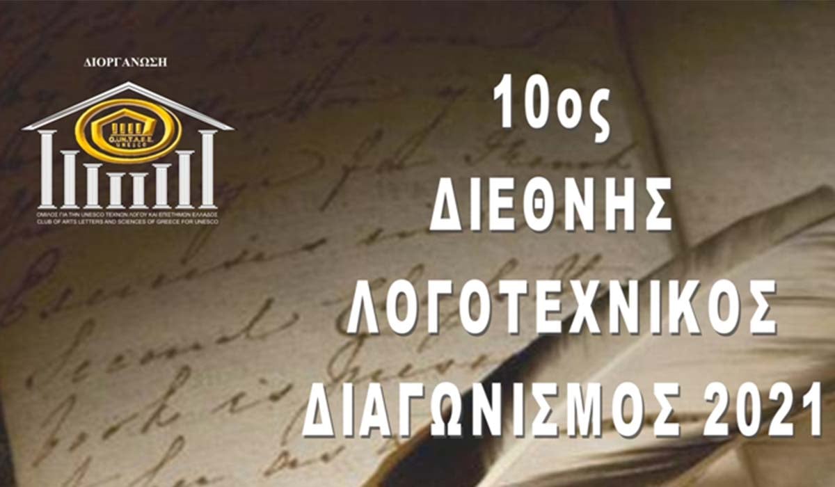 Ο Όμιλος για την UNESCO Τεχνών, Λόγου και Επιστημών Ελλάδος προκηρύσσει τον 10ο Διεθνή Λογοτεχνικό Διαγωνισμό 2021, με λήξη την 20η Ιουλίου 2021. Ο διαγωνισμός περιλαμβάνει τα είδη του λόγου: Διήγημα, Νουβέλα, Ποίηση, Παιδικό παραμύθι, Παιδικό – νεανικό διήγημα.