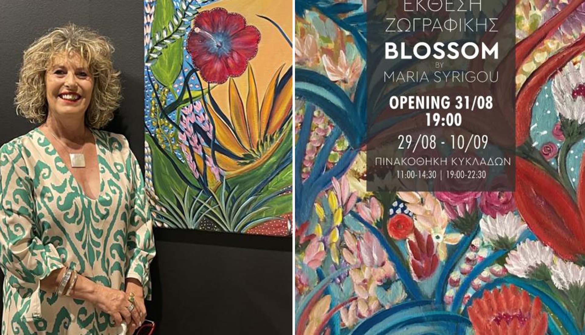 Όσοι βρεθείτε αυτές τις μέρες στην αρχόντισσα Σύρο, δεν πρέπει να χάσετε την ξεχωριστή έκθεση της εικαστικού Μαρίας Συρίγου, με τίτλο Blossom, η οποία παρουσιάζεται στην Πινακοθήκη Κυκλάδων από τις 29 Αυγούστου έως και τις 10 Σεπτεμβρίου.