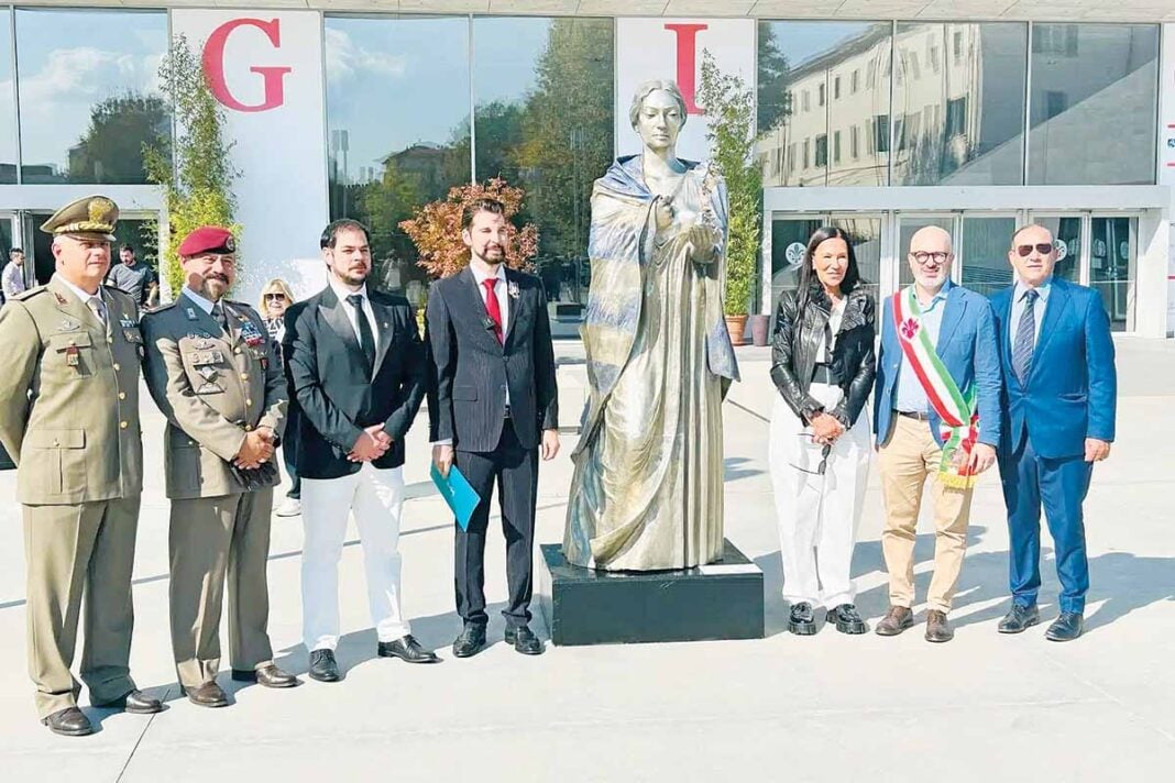 Το άγαλμα, ύψους δυόμισι μέτρων και κατασκευασμένο από χάλυβα, αποτελεί ένα «περιοδεύον έργο τέχνης», που έχει ήδη παρουσιαστεί στη Ρώμη, στη Βενετία και στο κτίριο της UNESCO στο Παρίσι. Η μεταφορά του αγάλματος της θρυλικής μας υψίφωνου στη μεγαλύτερη πόλη της Τοσκάνης κατέστη δυνατή χάρη στη δραστηριοποίηση του τοπικού, επίτιμου προξενείου μας.