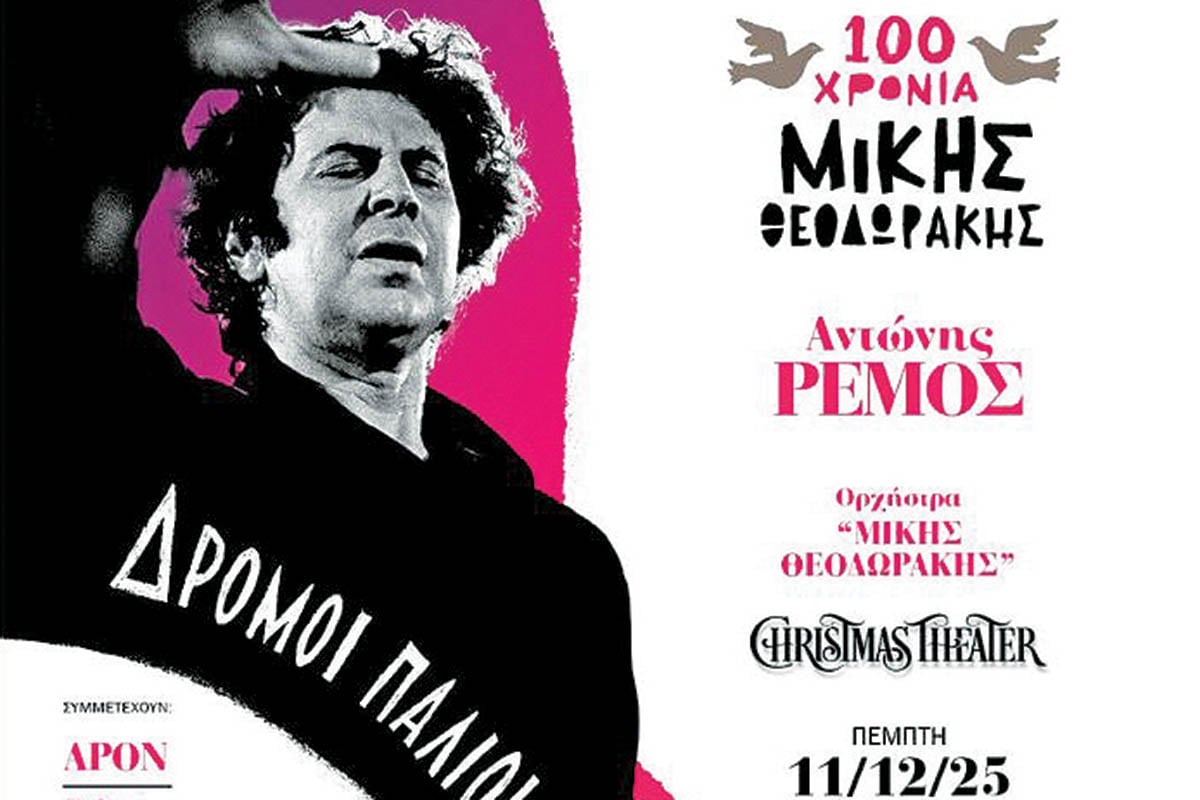 Με τα αθάνατα τραγούδια του Μίκη Θεοδωράκη θα συναντηθεί ο Αντώνης Ρέμος στις 11 Δεκεμβρίου, στη σκηνή του Christmas Theater, όπου θα φιλοξενηθεί μια μεγάλη συναυλία-αφιέρωμα στον κορυφαίο συνθέτη με αφορμή τα 100 χρόνια από τη γέννησή του.