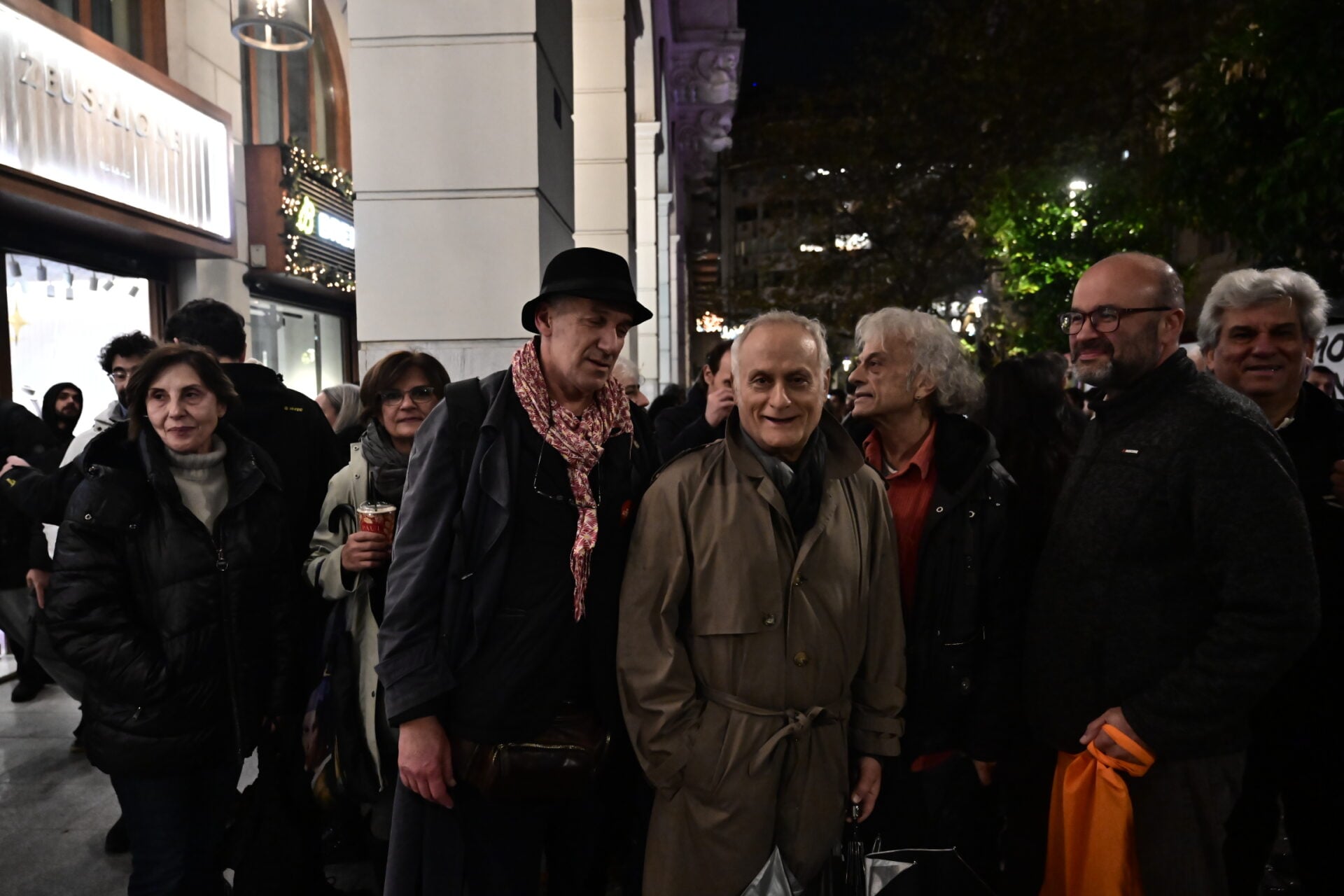 «Στηρίζουμε τον αγώνα των ηθοποιών» τόνισε ο Βασίλης Παρασκευόπουλος, πρόεδρος του Πανελλήνιου Μουσικού Συλλόγου. Επεσήμανε ότι σήμερα δίνεται «μια μεγάλη απάντηση», «μια μάχη που μας κάνει πιο δυνατούς».