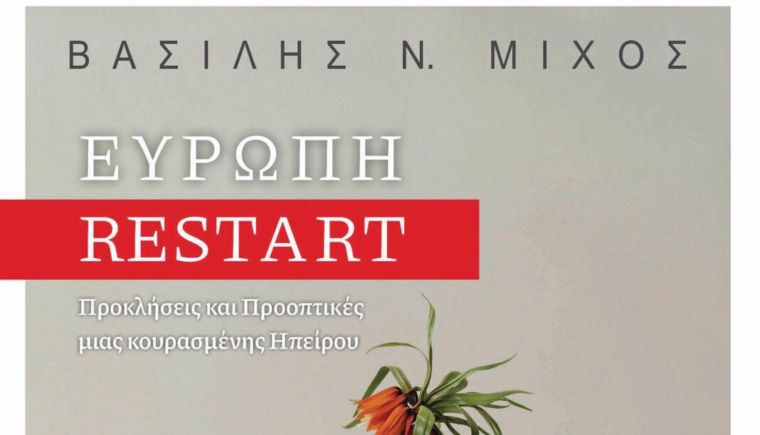 Ο Βασίλης Ν. Μίχος παρουσιάζει τη Δευτέρα 2 Μαρτίου, στις 7 μ.μ., στο Θέατρο της Ελληνοαμερικανικής Ενωσης, Μασσαλίας 22, 2103680900, το νέο του βιβλίο «ΕΥΡΩΠΗ RESTART», εκδόσεις Αρμός. Το βιβλίο προσφέρει μια διεισδυτική περιήγηση στις εξελίξεις που αφορούν την Ευρώπη του σήμερα σε σχέση και σύγκριση με αυτήν του χθες, με αναφορές σε γεγονότα που προσδιόρισαν την εξέλιξή της.