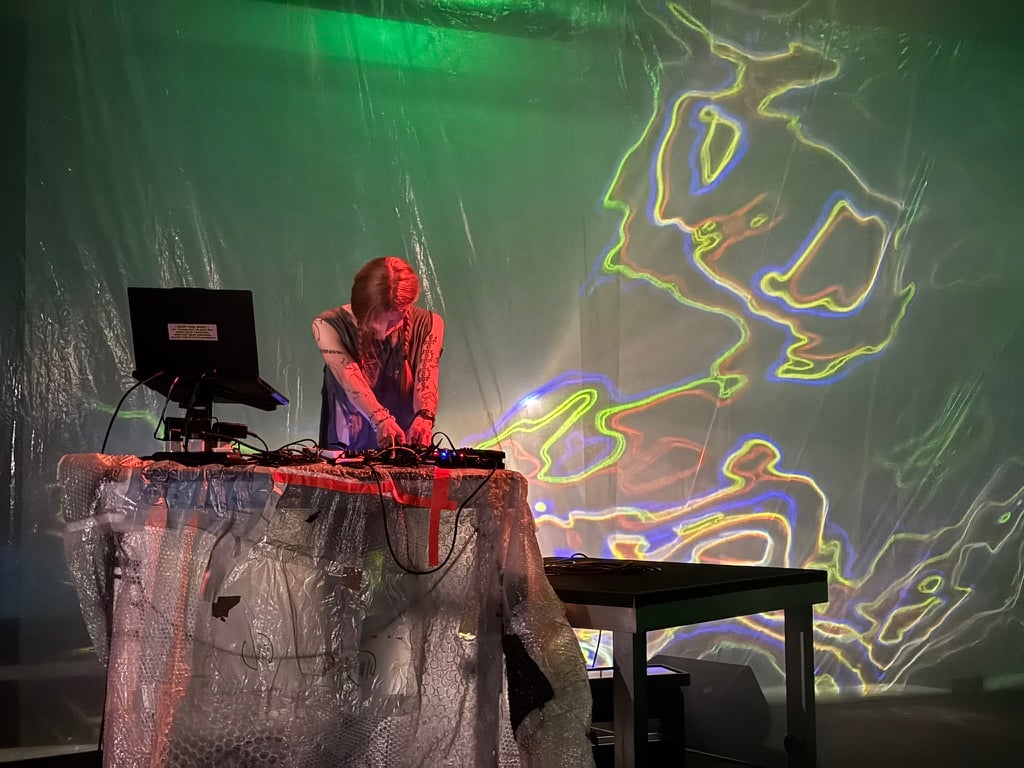 Ένας νεαρός μας άνοιξε την πόρτα του υπογείου και αμέσως ήρθαμε αντιμέτωποι με ένα ηλεκτρισμένο σκηνικό, χρωματιστά ψυχεδελικά ακανόνιστα σχέδια διακοσμούσαν ένα διάφανο πανί και μια γυναικεία μορφή σκυφτή με πάθος πάνω από ένα αναλογικό synthesizer παρήγαγε ζωντανά έναν απόκοσμο, δυστοπικό ήχο, ο οποίος όλο και δυνάμωνε σαν να ήταν προάγγελος, μιας κακής εξέλιξης…όμως εκεί σταμάτησε και το πλήθος άρχισε να χειροκροτεί θερμά καμαρώνωντας την καλλιτέχνιδα. Έμαθα ότι την έλεγαν aya, ήρθε από την Αγγλία συνθέτει και τραγουδάει πάνω στον καμβά της πειραματικής ηλεκτρονικής μουσικής.