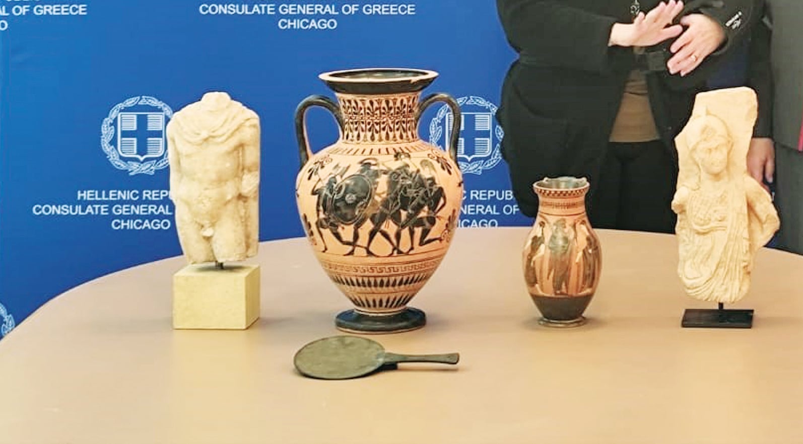 Αρχαιότητες που επαναπατρίζονται από τις Ηνωμένες Πολιτείες παρέλαβε, σε ειδική τελετή, στο γενικό προξενείο της Ελλάδας, στο Σικάγο, η υπουργός Πολιτισμού Λίνα Μενδώνη. Πρόκειται για δύο μελανόμορφα αγγεία, αμφορέα και όλπη, ήτοι αγγείο που μοιάζει με οινοχόη αλλά τα τοιχώματά του έχουν συνεχές καμπύλο περίγραμμα, αττικών εργαστηρίων του 6ου αιώνος π.Χ., ένα χάλκινο κάτοπτρο της Υστέρας Αρχαϊκής-Κλασικής περιόδου, ένα ακέφαλο μαρμάρινο άγαλμα του Ερμού του 1ου αι. π.Χ. – 1ου αι. μ.Χ. και τμήμα αναγλύφου, με παράσταση της θεάς Αθηνάς, του 2ου αι. μ.Χ. Τα αντικείμενα είχαν αποκτηθεί στις δεκαετίες ’70 και ’80 από την οικογένεια Ρίτσαρντ και Μέρι Λ. Γκρέι. Τον Μάιο του 2025, τα τρία παιδιά τους, Χάρι, Τζένιφερ και Πολ, επικοινώνησαν με τις ελληνικές Αρχές και προχώρησαν, από κοινού, στην οικειοθελή επιστροφή τους. Η διαδικασία ολοκληρώθη χθες, με ευθύνη της Διευθύνσεως Τεκμηριώσεως και Προστασίας Πολιτιστικών Αγαθών του Υπουργείου Πολιτισμού.