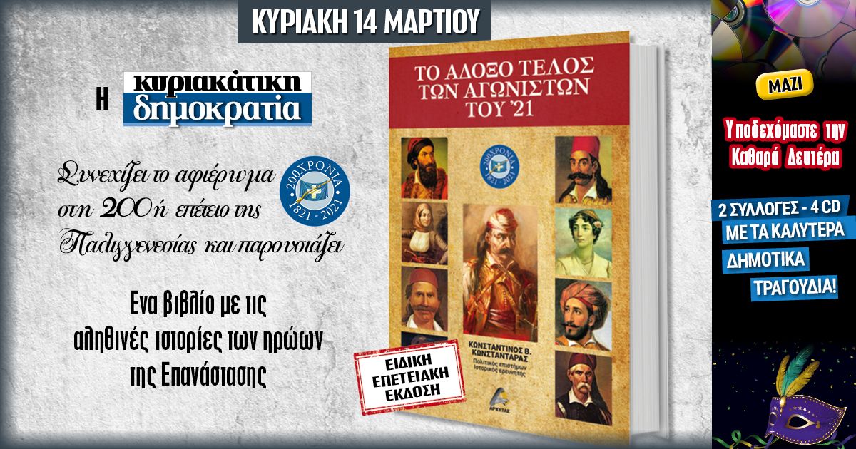 Εκτάκτως το Σάββατο 13.03 η «κυριακάτικη δημοκρατία» τιμά την επέτειο της Παλιγγενεσίας και παρουσιάζει «Το άδοξο τέλος των αγωνιστών του ’21» • Ειδική επετειακή έκδοση!