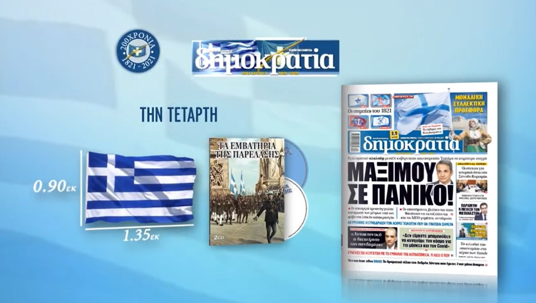 Την Τετάρτη 24.03 η εφημερίδα «δημοκρατία» συνεχίζοντας το μεγάλο αφιέρωμα στην 200η επέτειο της Παλιγγενεσίας, αφιερώνει όλη την ύλη της, στο 1821!