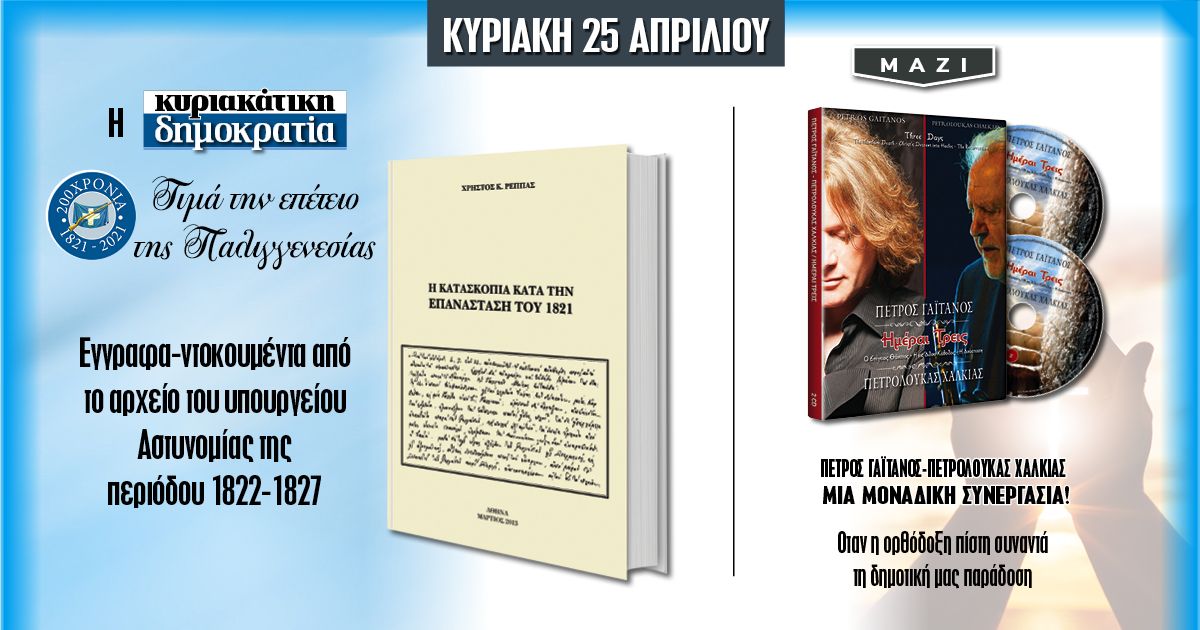 Την Κυριακή 25.04 η «δημοκρατία» τιμά την επέτειο της Παλιγγενεσίας και παρουσιάζει: «Η κατασκοπία κατά την Επανάσταση του 1821»