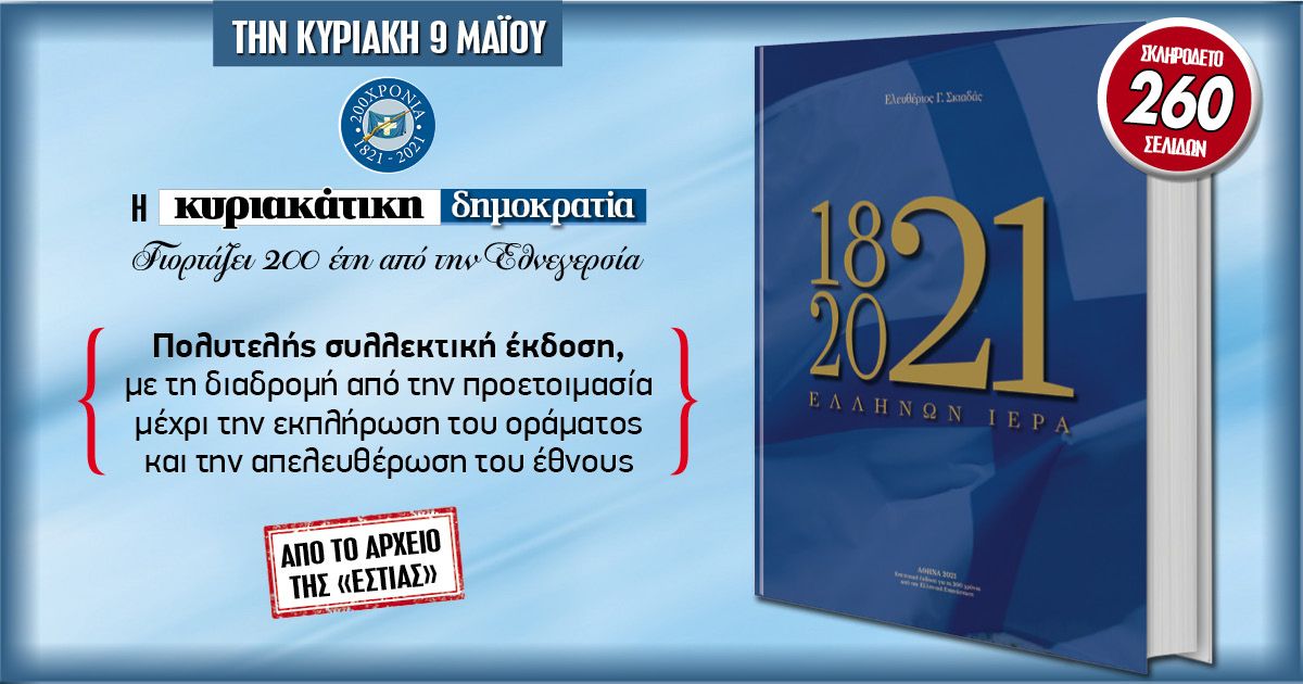 Την Κυριακή 09.05 η «κυριακάτικη δημοκρατία» παρουσιάζει την πολυτελή συλλεκτική έκδοση «1821-2021: ΕΛΛΗΝΩΝ ΙΕΡΑ»