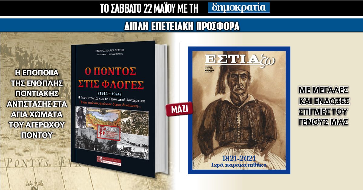 Το Σάββατο 22.05 με την «δημοκρατία» μία διπλή επετειακή προσφορά: