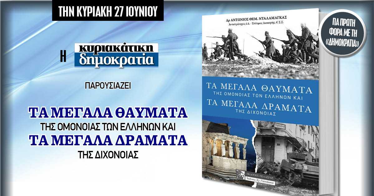 Την Κυριακή 27.06 η «δημοκρατία» παρουσιάζει για πρώτη φορά, «Τα μεγάλα θαύματα της ομόνοιας των Ελλήνων και τα μεγάλα δράματα της διχόνοιας».