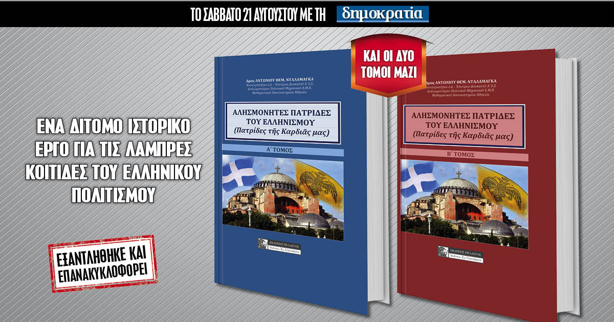Το Σάββατο 21.08 με την «δημοκρατία»: Αλησμόνητες πατρίδες του Ελληνισμού: Οι πατρίδες της καρδιάς μας, που χάθηκαν, αλλά παρέμειναν ριζωμένες στις ψυχές των Ελλήνων!