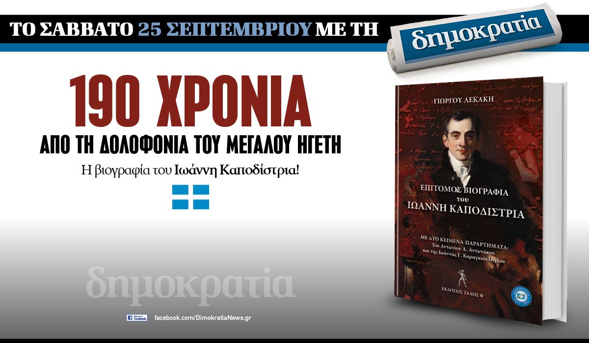 Το Σάββατο 25.09 με την «δημοκρατία»: Εκατόν ενενήντα χρόνια, από την δολοφονία του μεγάλου ηγέτη. Η βιογραφία του Ιωάννη Καποδίστρια!