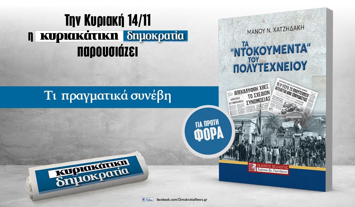 Την Κυριακή 14.11 η «δημοκρατία» παρουσιάζει: 48 χρόνια μετά • Τα ντοκουμέντα του Πολυτεχνείου • Τι πραγματικά συνέβη!
