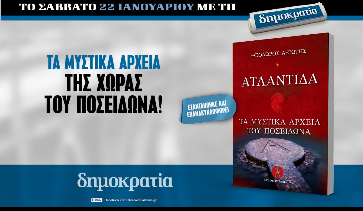 Το Σάββατο 22.01 με την «δημοκρατία» • Τα μυστικά αρχεία της χώρας του Ποσειδώνα • Το συγκλονιστικό βιβλίο του Θεόδωρου Αξιώτη, που αποκαλύπτει την ιστορία πίσω από τον μύθο της Χαμένης Ατλαντίδας, μέσα από τα γραπτά του Πλάτωνα.