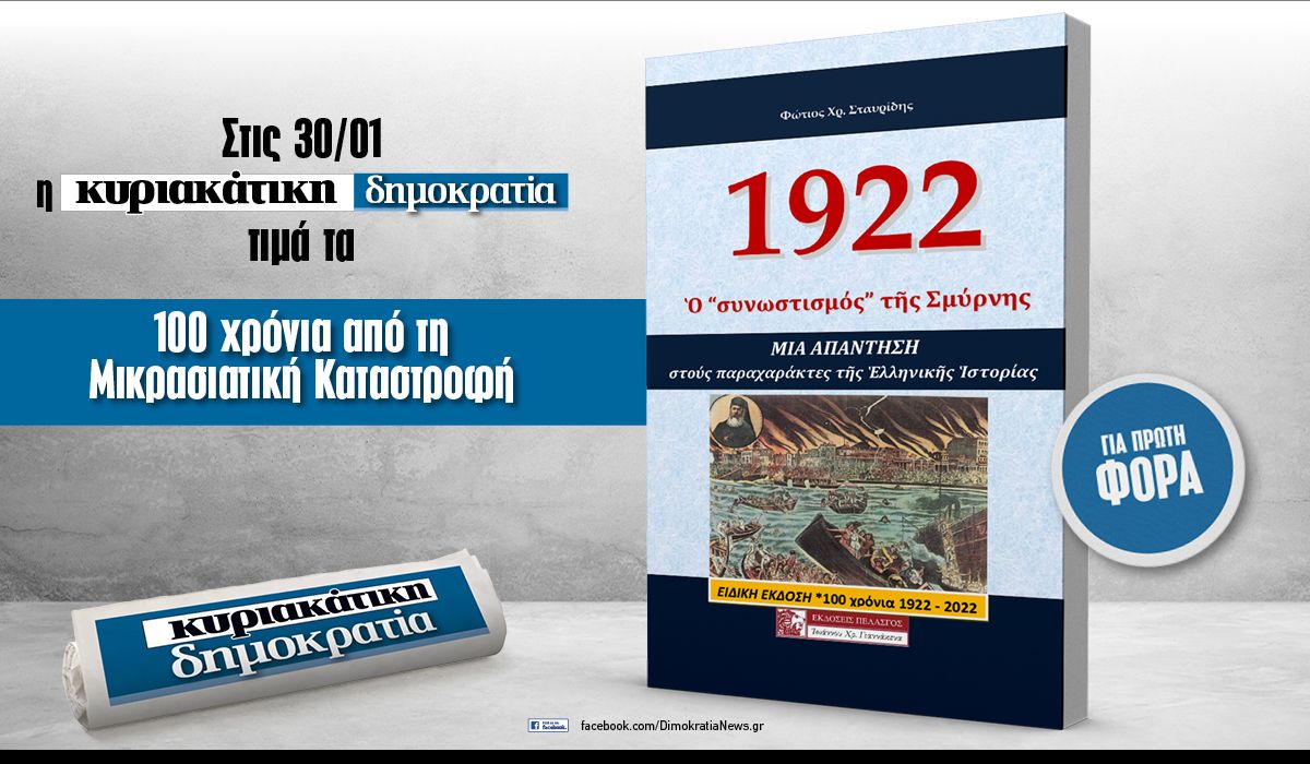 Στις 30.01 η «κυριακάτικη δημοκρατία» τιμά τα 100 χρόνια από την Μικρασιατική καταστροφή με μία ειδική έκδοση • 1922