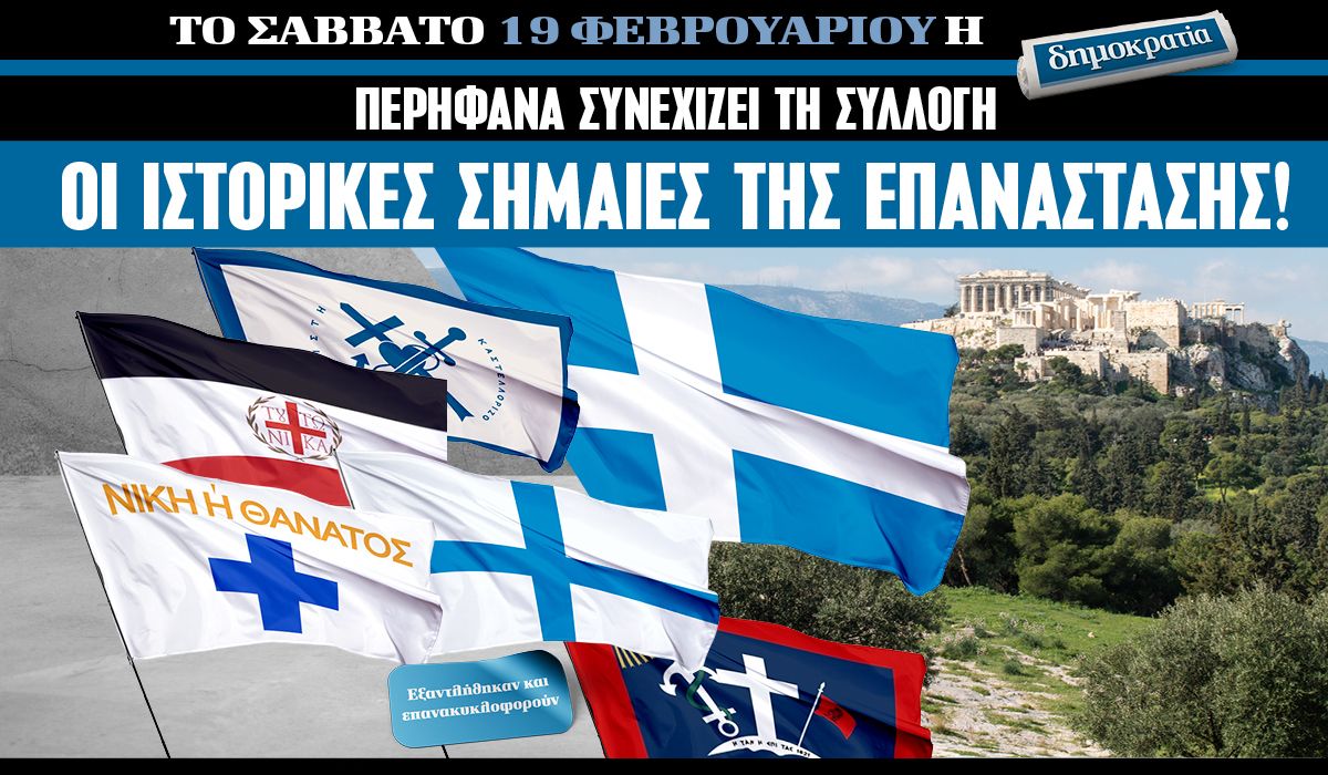 Το Σάββατο 19.02 η «δημοκρατία» περήφανα συνεχίζει την συλλογή: Οι ιστορικές σημαίες της Επανάστασης!