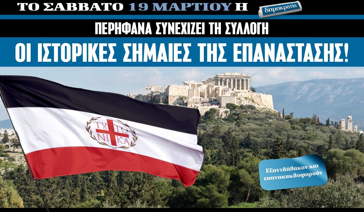 Το Σάββατο 19.03 η «δημοκρατία» περήφανα συνεχίζει την συλλογή, Οι ιστορικές σημαίες της Επανάστασης!