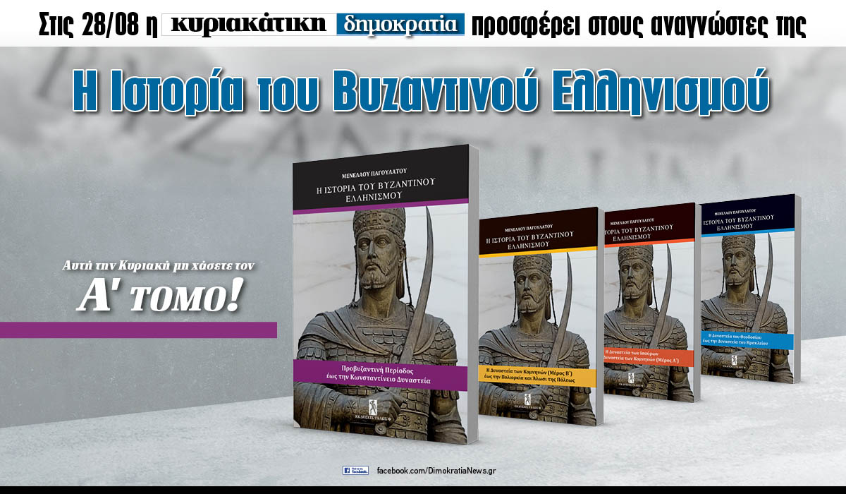 Στις 28.08 η «κυριακάτικη δημοκρατία» προσφέρει στους αναγνώστες της ένα μεγαλειώδες έργο, για την ιστορία του Βυζαντινού Ελληνισμού.
