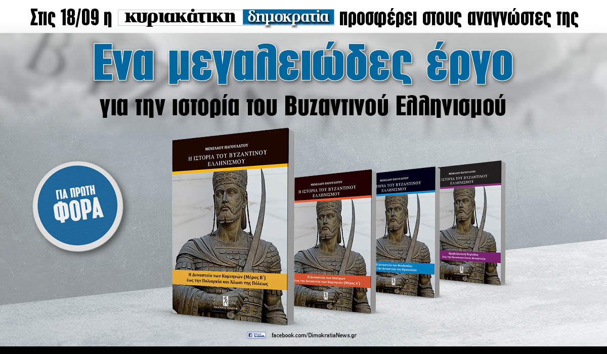 Στις 18.09 η «κυριακάτικη δημοκρατία» προσφέρει στους αναγνώστες της ένα μεγαλειώδες έργο για την ιστορία του Βυζαντινού Ελληνισμού.