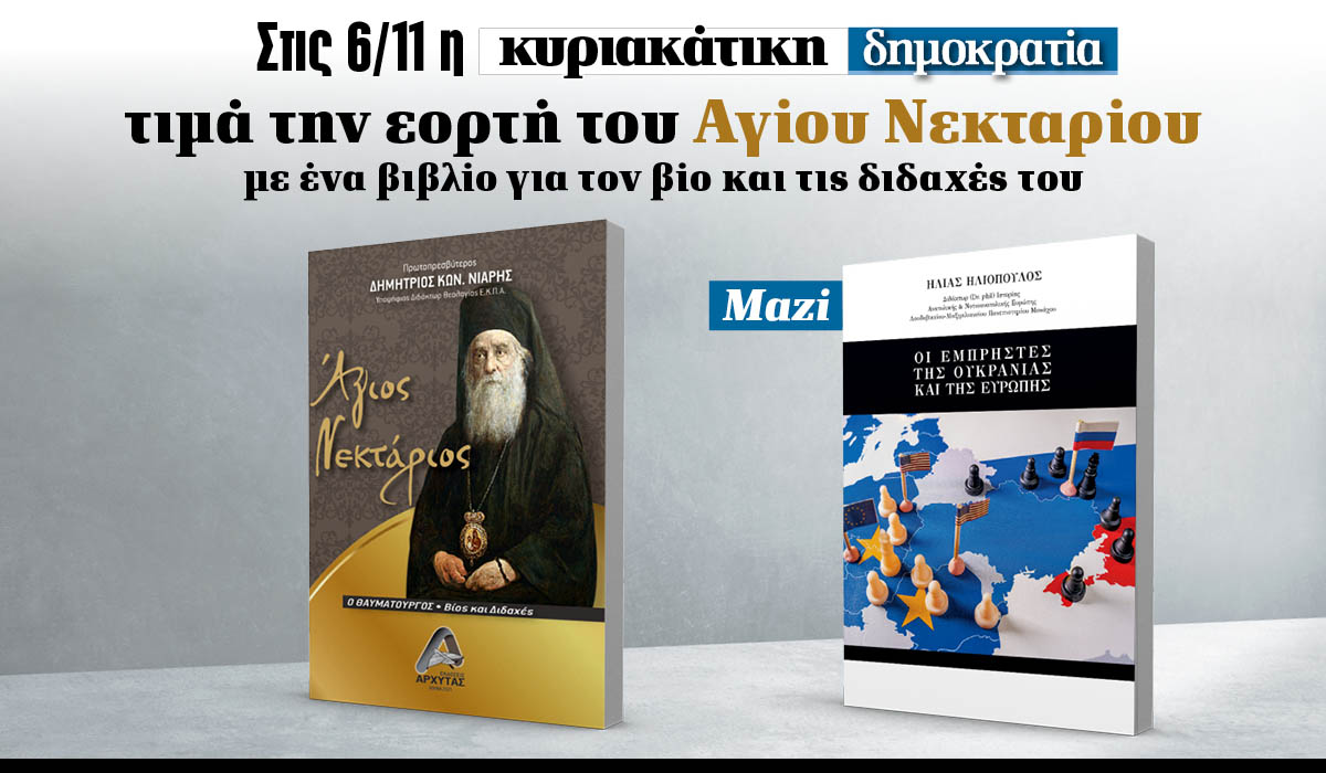 Στις 06.11 η «κυριακάτικη δημοκρατία» τιμά την εορτή του Αγίου Νεκταρίου με ένα βιβλίο για τον βίο και τις διδαχές του: ΑΓΙΟΣ ΝΕΚΤΑΡΙΟΣ Ο ΘΑΥΜΑΤΟΥΡΓΟΣ