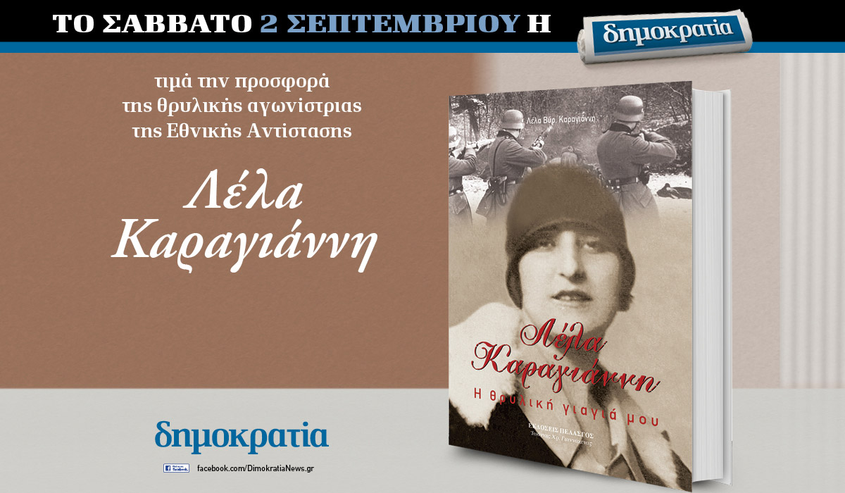 Στις 02.09 «δημοκρατία» Σαββάτου τιμά την προσφορά της θρυλικής αγωνίστριας της Εθνικής Αντίστασης: Λέλα Καραγιάννη • Η «Μπουμπουλίνα» της κατοχής!