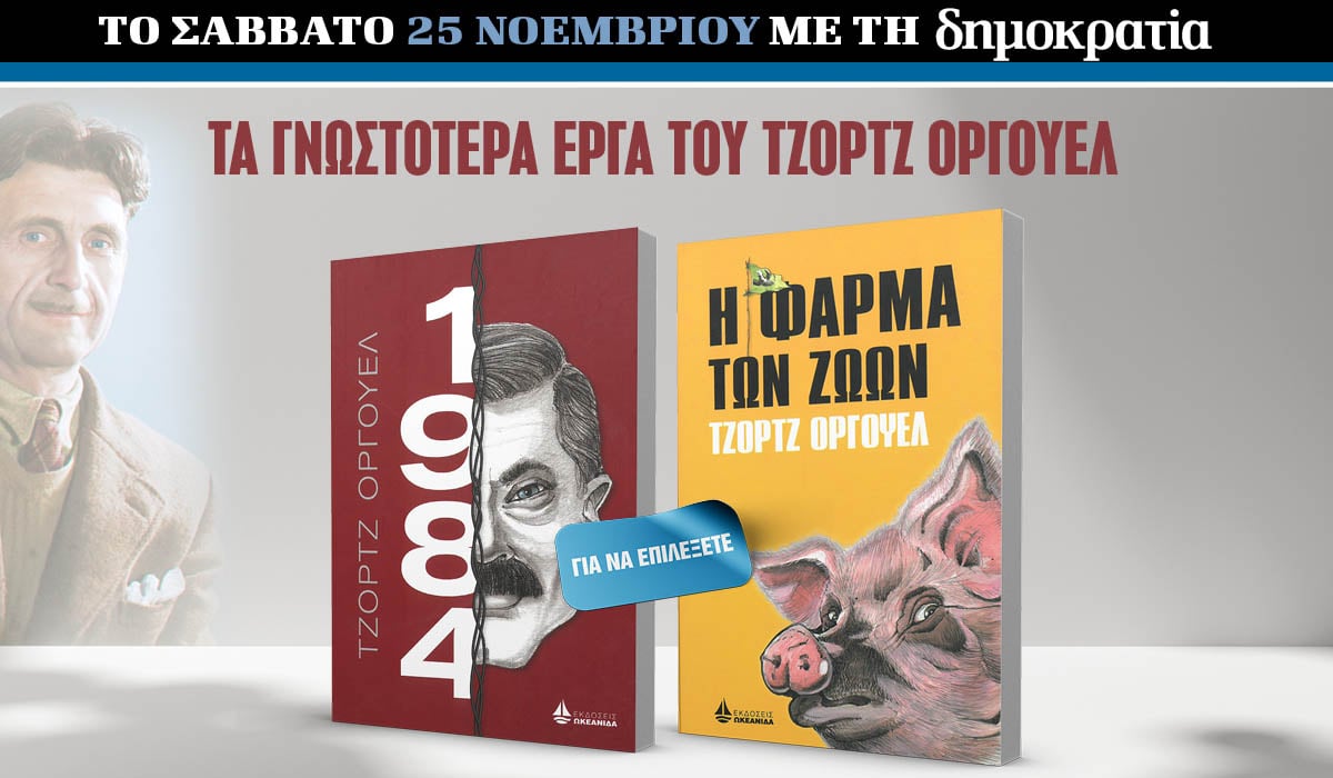 Μη χάσετε το Σάββατο 25.11 με την δημοκρατία: Τα γνωστότερα έργα του Τζορτζ Όργουελ σε σκληρόδετη αυθεντική έκδοση