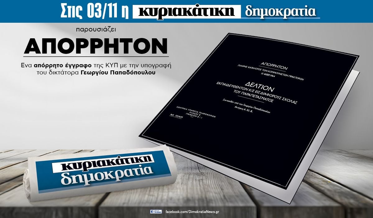 Στις 03.11 η «κυριακάτικη δημοκρατία» παρουσιάζει: ΑΠΟΡΡΗΤΟΝ