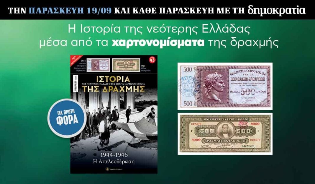 Tην Παρασκευή 19.09 με την «δημοκρατία»: Η ιστορία της Νεότερης Ελλάδας μέσα από τα χαρτονομίσματα της δραχμής!