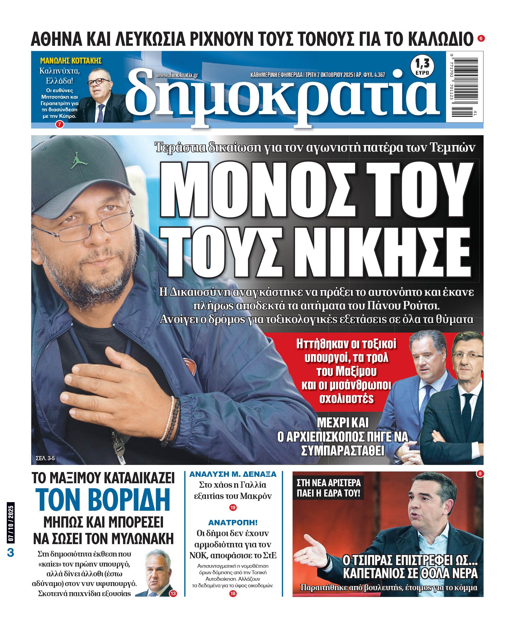 Ακολούθησέ μας στα social media για να μένεις πάντα ενημερωμένος με τις τελευταίες ειδήσεις, αποκαλύψεις και αποκλειστικό περιεχόμενο από τη Δημοκρατία.