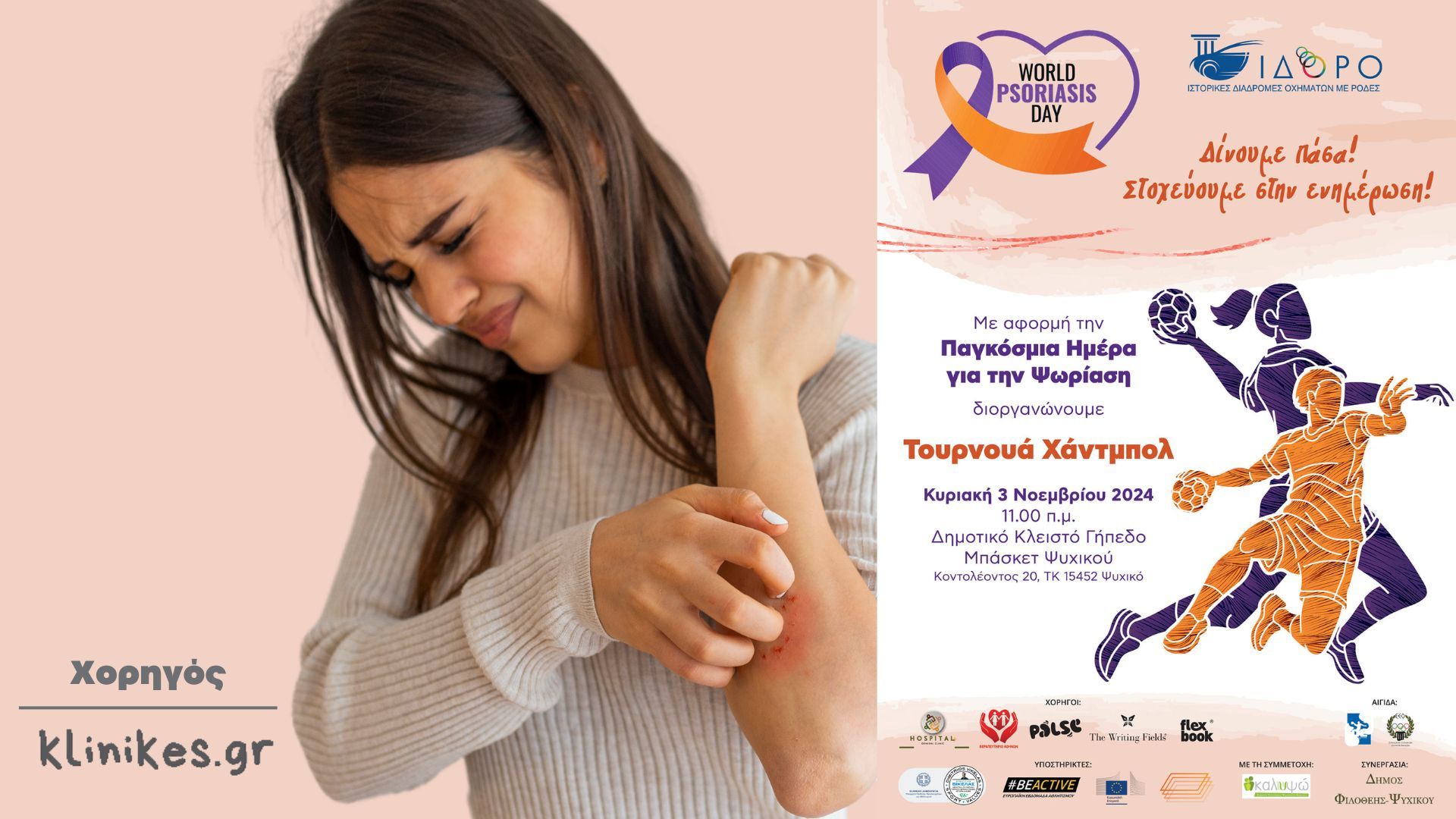 Το Θεραπευτήριο Αθηνών και η Γενική Κλινική HOSPITALity, μέλη του δικτύου klinikes.gr, με μεγάλη χαρά και τιμή θα είναι χορηγοί υγείας στην ενημερωτική εκδήλωση, που διοργανώνεται με αφορμή την Παγκόσμια Ημέρα Ψωρίασης, από τον Σύλλογο Ιστορικές Διαδρομές Οχημάτων με Ρόδες – ΙΔΟΡΟ και τον Δήμο Φιλοθέης-Ψυχικού.